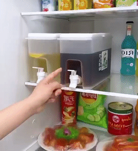 The party water/drink dispenser in the refrigerator.Make all kinds of cold drinks as you like.You can put fruits, tea, honey, milk, juice, and alcohol in the cold kettle. Allows you to drink cool water and drinks at any time in the hot summer.It is the best choice for health preservation, office rest, and parties.