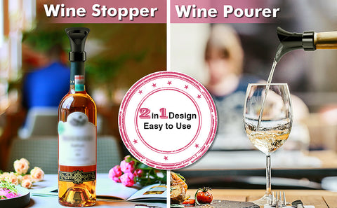 - [Dual Function and Wide Application] In terms of functions, our product has the functions of a leak-free bottle sealer and red wine drip-free pourer at the same time. It's one of the best wine accessories suitable for all kinds of occasions, such as daily drinking, dating, family gathering and business dinner, etc. To clean the bottle stopper, just simply rinse with cold water, dry with a rag and preserver. Very convenient for you to use.