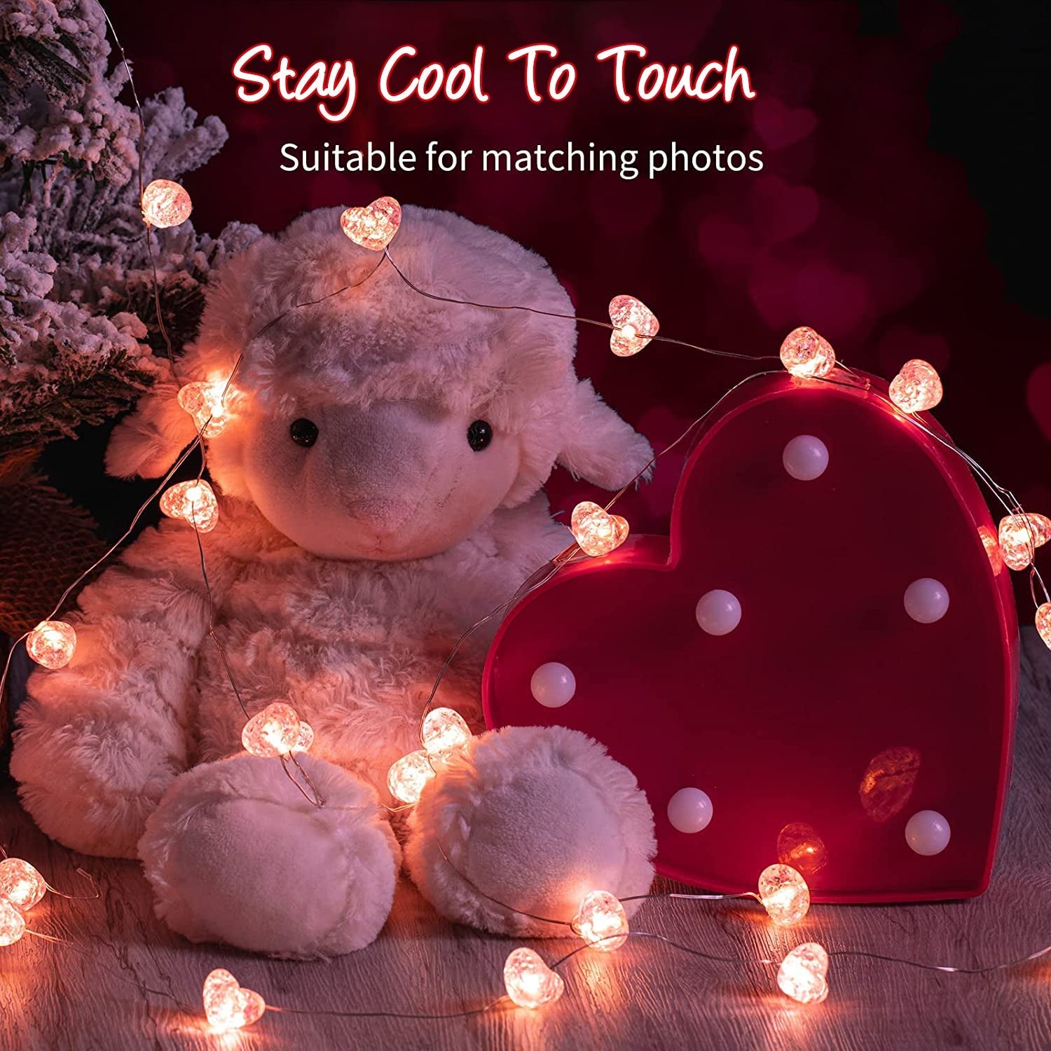 💝Romantic Glow With Pink /Red Heart: We use warm LED bulbs to light the pink/ red heart up to create a warm soft red atmosphere for your Valentine’s day décor. When the string lights light up, the heart look like a shining diamond.